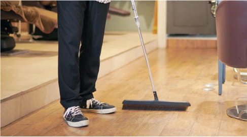 最後のお客様が帰られたら閉店後の掃除を開始します。毎日綺麗な職場で仕事をする事で気持ちよくモチベーションもあがります♪