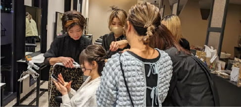 入社後1〜3か月は平日9:00-17:00を“練習専用時間”として確保。基礎技術(カラー等)・接客を段階的に学びます。到達度チェック表を使うため、自分の成長が可視化できます。